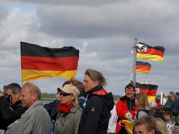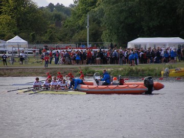 dok se veslaju finalne utrke i spasilački čamac pomaže iscrpljenim Nijemcima na cilju, |