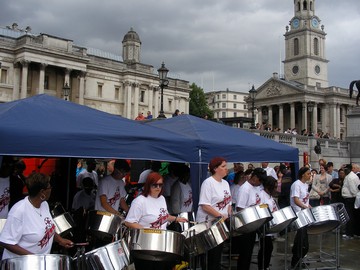 brod na Temzi; na provi svira band |