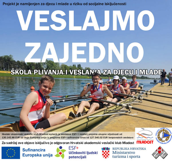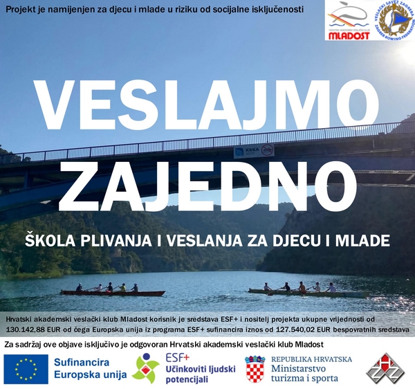 Projekt je sufinanciran sredstvima Europske unije iz programa ESF+ u 98 % iznosu unutar programa „Učinkoviti ljudski potencijali 2021. - 2027.“ kroz poziv: „Uključivanje djece i mladih u riziku od socijalne isključenosti u sport“, te je usmjeren na sustavno uključivanje djece i mladih u riziku od socijalne isključenosti u strukturirane sportske aktivnosti veslanja i plivanja, kroz 4 sportska programa i 7 edukativnih radionica, uz sudjelovanje stručnih osoba.