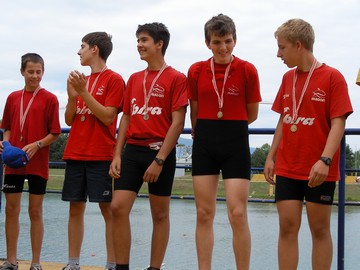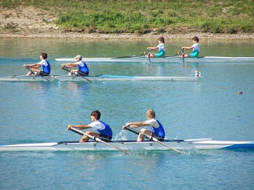 Skifovi 8. razred - Krešo Kavčić (mislim da je škola Kustošija) je fantastično brzo veslao, ali ga je naš Boris Gardijan (škola Trnsko) stigao. Čini se da je bio ispred Kavčića samo u času prolaska kroz cilj. I u ovoj utrci bi foto finiš bio dobrodošao.